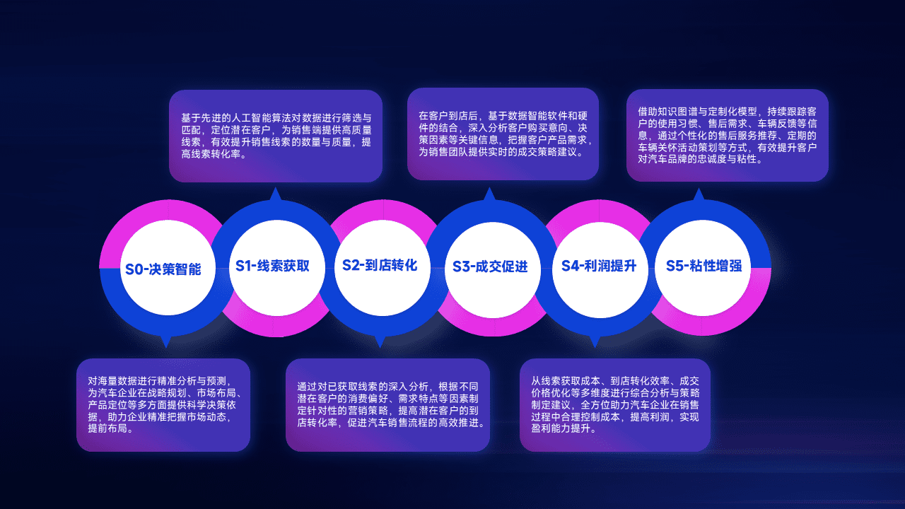 通过拓宽潜在客户来源、、、、优化线索分配并提高到店转化率,,,以增强销售效率。。。同时,,,利用线索数据不断优化分析模型,,有效提升转化率,,,,扩大营销影响力。。。。